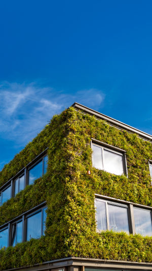 • Climbing plants like ivy, wisteria, or roses are great options for outdoor green walls because they're natural climbers.